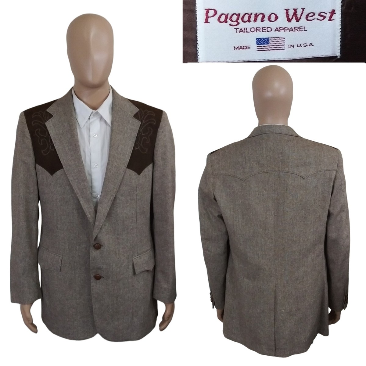 USA製 PAGANO WEST ウエスタンテーラードジャケット 44R 2XL Vintage Pagano West USA Leather Button Flecked Rockabilly Western