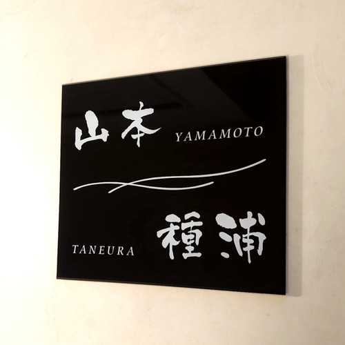 | メーカー | な*2世帯向け黒ベース・白文字アクリル表札*UV印刷*4辺45度斜めカット |