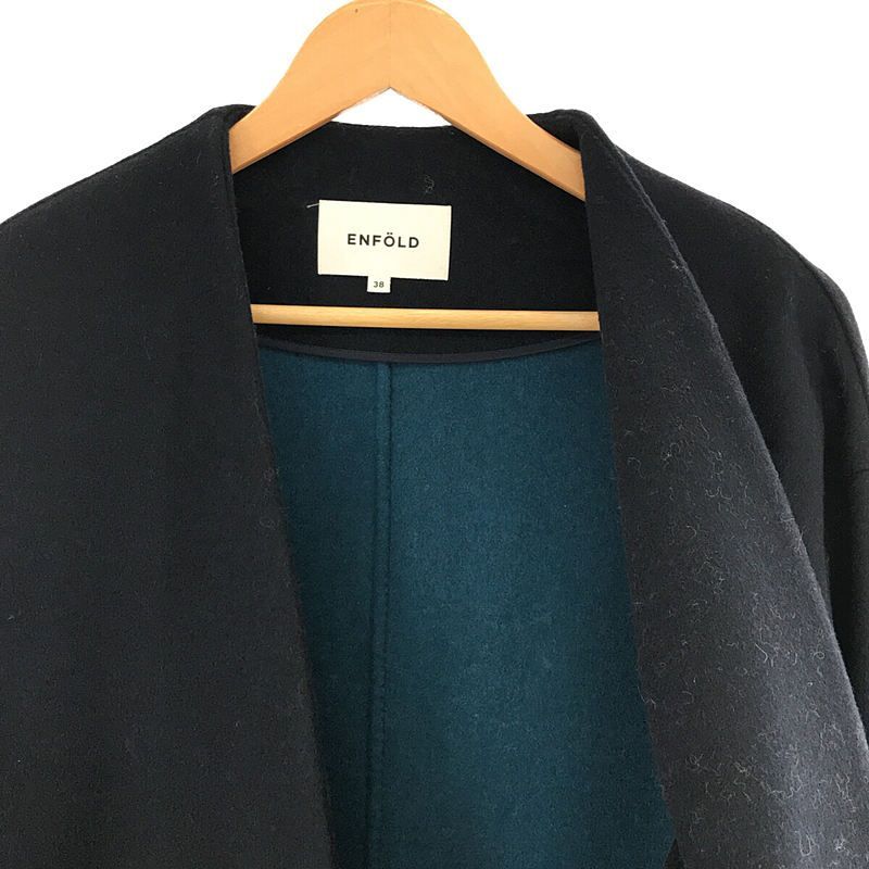 名品✨ENFOLD ウールリバー ノーカラーコート バイカラー ネイビー 38 名品✨】ENFOLD ウールリバー ノーカラーコート バイカラー ネイビー38