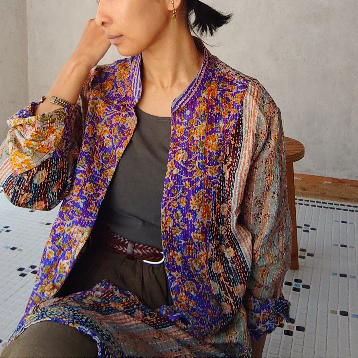 | 商品の特徴 | カンタ刺繍のリバーシブルジャケットNo.3 Free size | design labo c。カンタ刺繍のリバーシブルジャケットNo.3 Free size | design labo c。粋 八方睨みの龍リバーシブルスカジャン 絡繰魂 244132 和柄 和風 刺繍。楽天市場】粋 百獣の王君臨リバーシブルスカジャン 絡繰魂 241036 和柄。メルカリ出品のみ/詐欺サイト偽ページにご注意を‥ご面倒をお掛けしますがプロフィールをお読み下さい【中古/自宅保管品にご理解頂き慎重にご検討下さい】ワンシーズン5回程度着用 ホームクリーニング済桐箱でたたみ保管 天然素材防虫香使用【古布のコンディションにご理解ください】使い古したサリー(女性衣)やドーティ(男性衣)を再利用するために、数枚を重ねてひと針ひと針手仕事で刺し子を施し、代々受け継ぎ使い続けています古着素材の特性上、1点1点の素材、色柄サイズが異なり色ムラやシミ汚れ色落ち、織フシネップがありますカンタの特性上リバーシブルで着られますゆったりした袖幅でなかにスウェットも着られます夏の終わりにTシャツに羽織っても良し、長く着られるガウンです⭕️※購入時より赤染料が付着している箇所が所々ありますFreadaフリーダリメイク刺し子ガウン ¥49,500-size / Freematerial / cotton 100% 平置き採寸ご参考迄になさって下さい…着丈/バックネックポイントから約100cm身幅約61cm ゆき丈約82cm黒色面のみポケット×2※コンパクトに梱包してお送りいたします梱包/保管時の折ジワなどについてはご容赦ください | ||