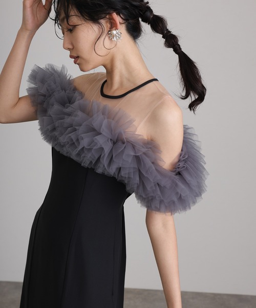| メーカー | ミモレ丈&ノースリーブフォーマルギャザーチュールセレモニー結婚式パーティードレス |