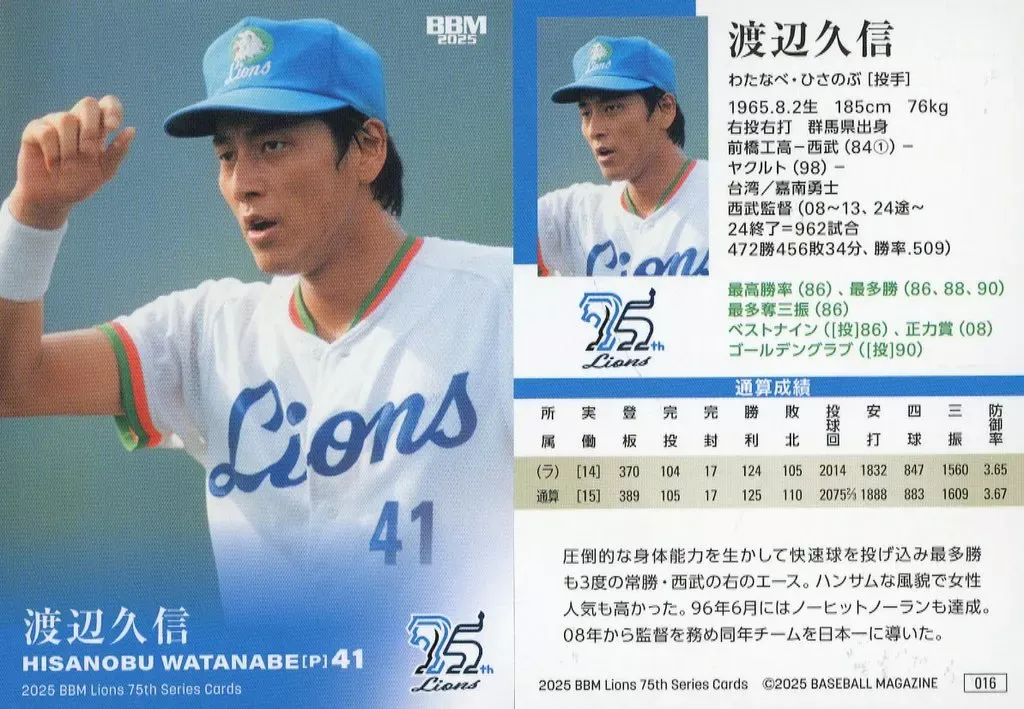 | メーカー | 埼玉西武ライオンズ 渡辺久信監督 |