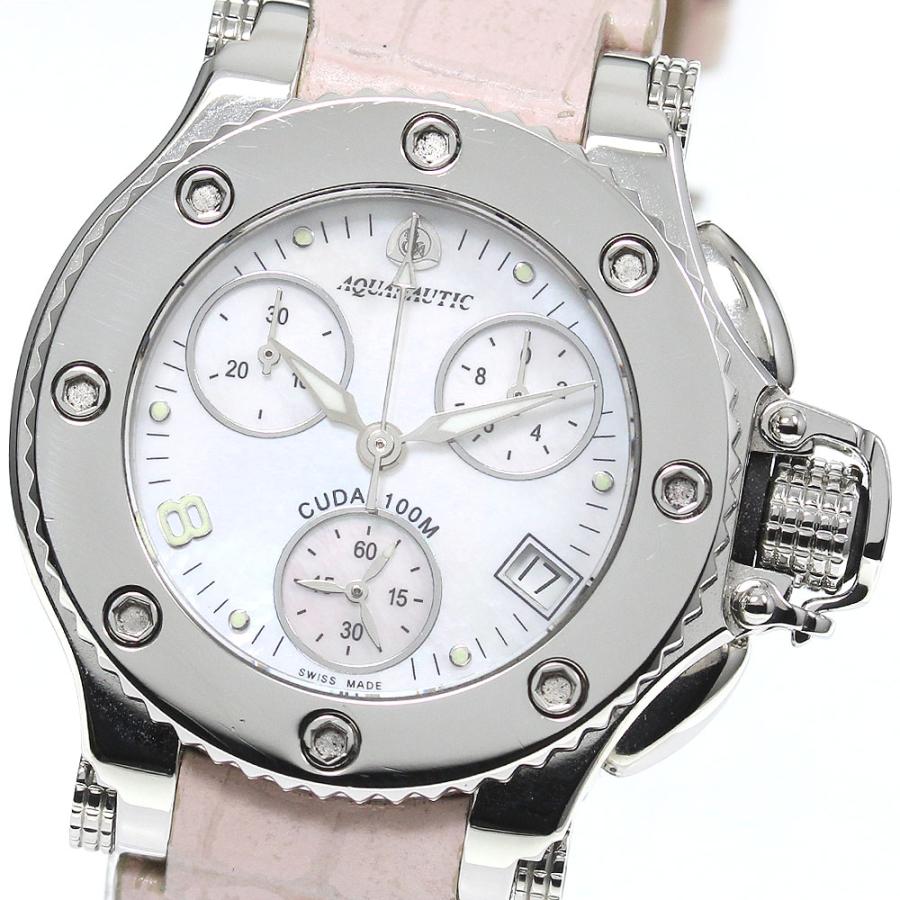 | 商品の特徴 | アクアノウティック プリンセスクーダ クロノグラフ シェル文字盤 クォーツ。AQUANAUTIC - アクアノウティック AQUANAUTIC プリンセスクーダ クロノ。アクアノウティック プリンセスクーダ クロノグラフ シェル文字盤 クォーツ。始めましてハッピーターンと申します数ある中からご観覧頂き又はご縁持って頂き感謝します^_^この度はアクアノウティックプリンセスを出品させて頂きますので、宜しくお願いしますこちらはused品で5年くらい前にO/Hに出し、今年6月に電池交換をして頂いたので当分は気持ちよく使用して頂けるかと思います出品物は画像の物のみで箱等は有りませんのでご理解の程宜しくお願いします動作も確認済みでクロノグラフも問題なくスムーズに動きます精密機械でused品ですので、その辺はご理解の程宜しくお願いしますダイヤベゼルは細かい傷が有りますが、極力清掃して発送させて頂きますこちら素人で詳しい知識は無いので、お互いに嫌な思いはしたくないので、気になる事や画像の追加等有りましたらコメント頂けると助かります(^^)丁寧な対応又は発送と心がけますのでご縁有りましたら、宜しくお願いしますAQUANAUTIC アクアノウティック プリンセスクーダ クロノグラフ デイト シェル文字盤 クォーツ レディース腕時計 ケースはベゼルが31mm/リューズのぞいて約35mmでボーイズサイズのようなサイズですベゼル:小傷多めですケース:綺麗めです文字盤:シェル文字盤 綺麗です裏蓋:綺麗です風防:綺麗ですバンド:黄色革ベルト やや使用感ありますがまだまだ使って頂けると思います。アクアノウティック プリンセスクーダ クロノグラフ シェル文字盤 クォーツ。フリーサイズused品ですがピンクの革ベルトとラバーベルトを同封させて頂きます文字盤カラー...ホワイトベルトカラー...イエロー | ||